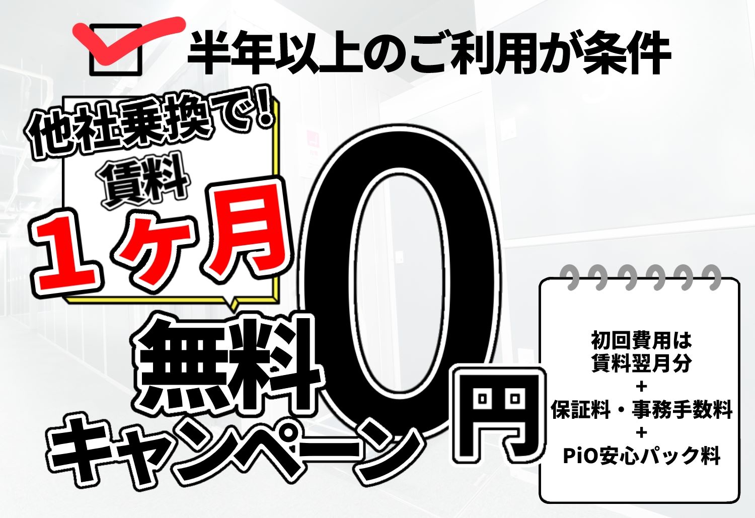 ※キャンペーンを行っている店舗では、ご利用期間が一定以上ある場合にキャンペーンが適用されます。キャンペーン期間に満たないご契約の場合は対象外となりますので、ご了承ください。